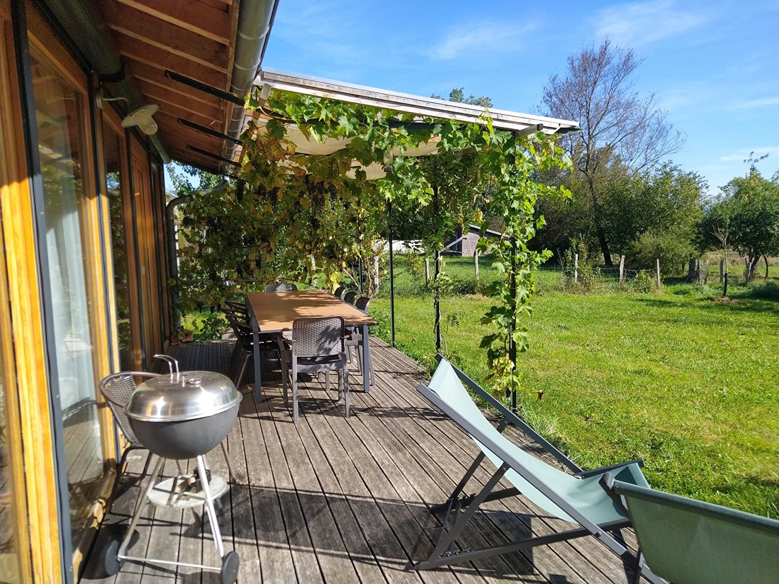 Maison indépendante de plain-pied et accessible aux personnes à mobilité réduite, pouvant accueillir 6 à 15 personnes. Cuisine, salle de séjour, salon, 4 grandes chambres et 2 salle de bains/WC handicapé, WC séparé. 2 terrasses. Grand terrain. Accès à la cave salle de jeux avec billard, baby-foot, ping-pong, kaplas... A l'extérieur trampoline, bac à sable, tobogan. Animaux dans le pré.